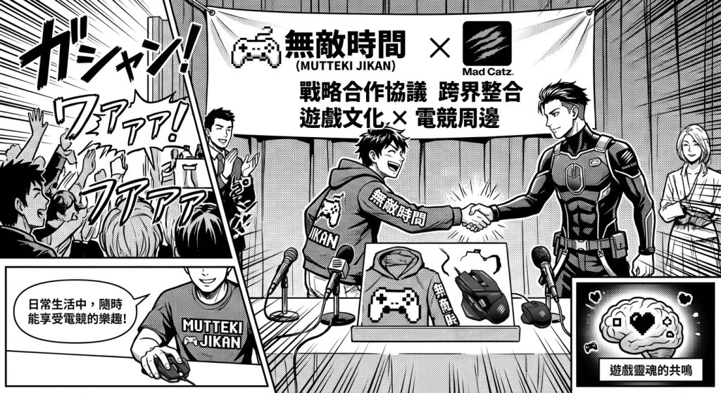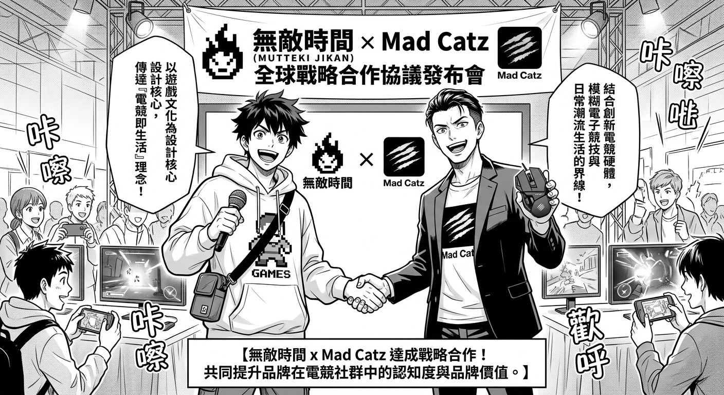 以「遊戲文化」為設計核心的潮流服飾品牌「無敵時間(MUTTEKI JIKAN)」,宣布與全球頂尖電競周邊設備廠商「Mad Catz Global Limited(美加獅)」達成戰略合作協議。雙方將透過跨界整合,共同提升品牌在電競社群中的認知度與品牌價值,目標是模糊電子競技與日常潮流生活的界線。