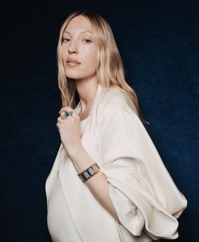 有些設計是被刻意堆砌出來的「作品」;但即使懷了身孕的Ella Richards ,佩戴著Piaget珠寶,所散發出美好又自在的狀態。