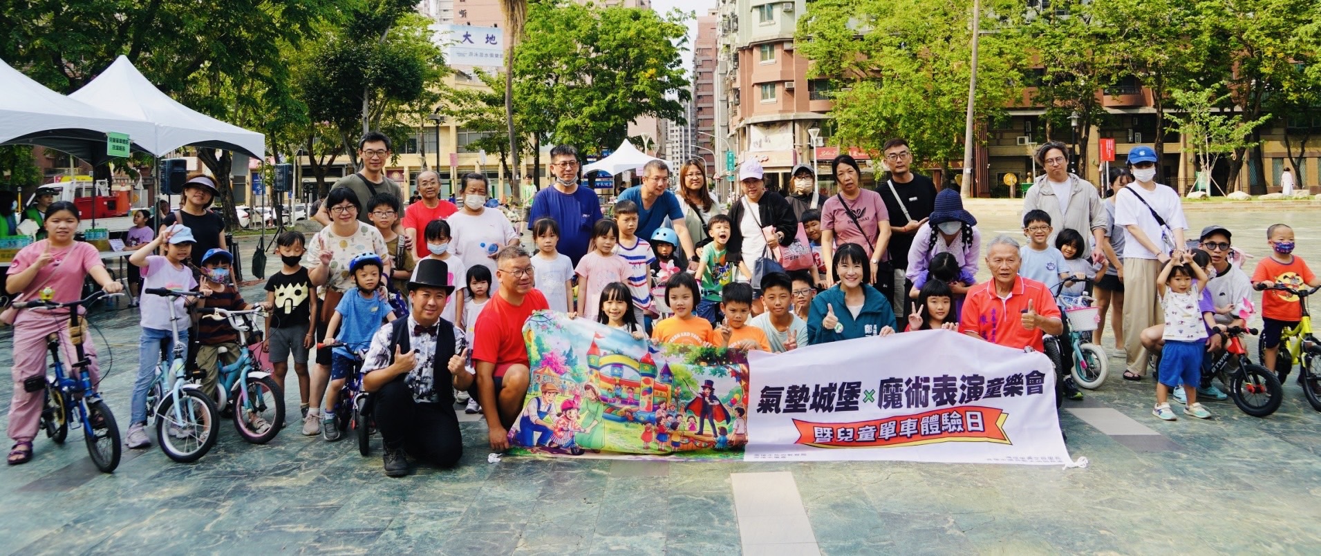 活動內容豐富多元,由「倉庫自行車學校」帶領專業的騎乘教學,從安全護具穿戴到平衡感訓練,讓孩子在遊戲中建立正確安全觀念。現場還有魔術表演與親子帶動跳,加上特色餐車的美食香氣,讓鼎泰公園成了家長心目中最完美的「放電天堂」。
