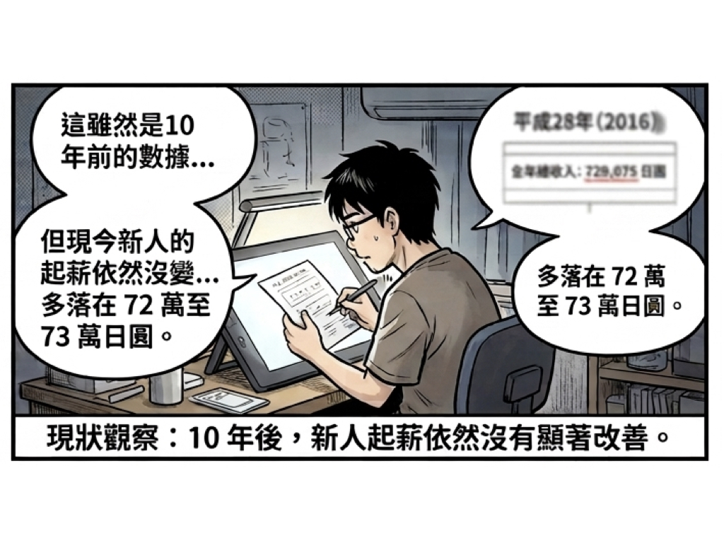 儘管該數據距今已有數年,但該名動畫師指出,日本動畫業界的薪資結構並未隨著產業產值的增長而顯著改善。據觀察,現今許多入行新人的年收依然徘徊在 72 萬至 73 萬日圓左右,產業底層的「貧困化」現象依然持續。