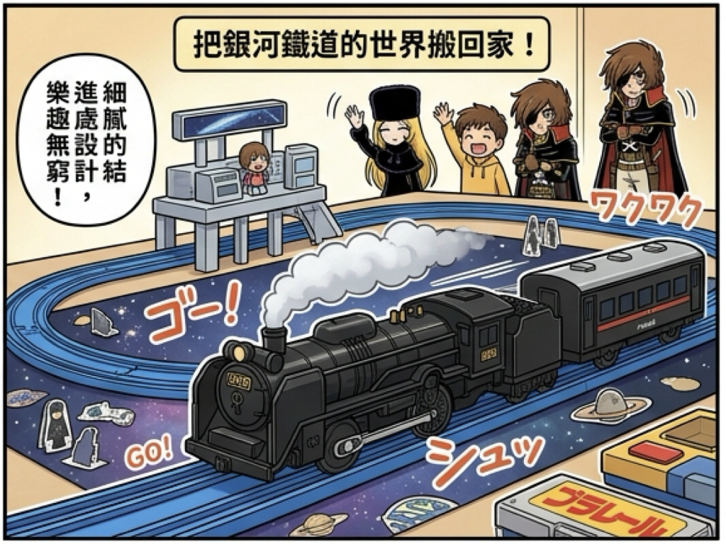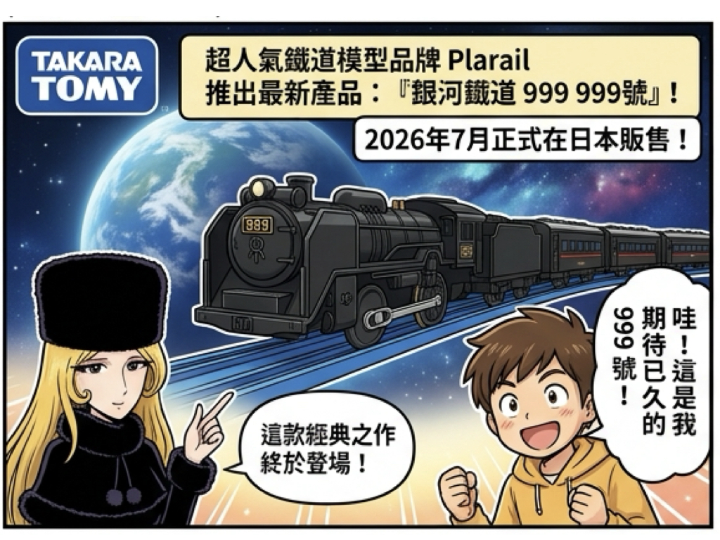 日本玩具大廠 TAKARA TOMY 宣布旗下超人氣鐵道模型品牌「Plarail」(鐵道王國)推出最新產品—經典動漫大作「Plarail 銀河鐵道 999 999號」 。這款令無數動漫迷與鐵道迷期待已久的經典之作,於 2026 年 7 月正式在日本市場販售 。