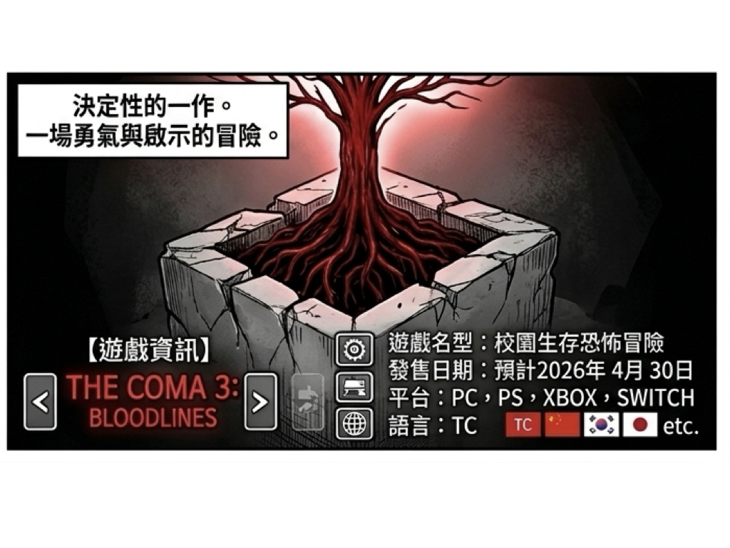 韓國獨立開發團隊 Devespresso Games 打造的《昏迷(The Coma)》系列,廣受全球恐怖遊戲玩家好評,現正式宣布其最新續作《昏迷 3:血脈》(The Coma 3: Bloodlines)於 4 月 30 日發售。作為系列的關鍵轉點,本作品不僅延續了標誌性的手繪漫畫風與窒息的追逐戰,更承諾將解開自初代作品以來埋藏多年的核心謎團。