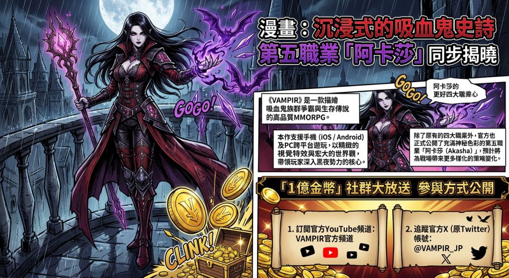 吸血鬼題材MMORPG大作《ヴァンピール(VAMPIR)》啟動事前預約!官方YouTube及X雙平台追蹤活動開跑,豪送「1億金幣」助玩家搶佔先機