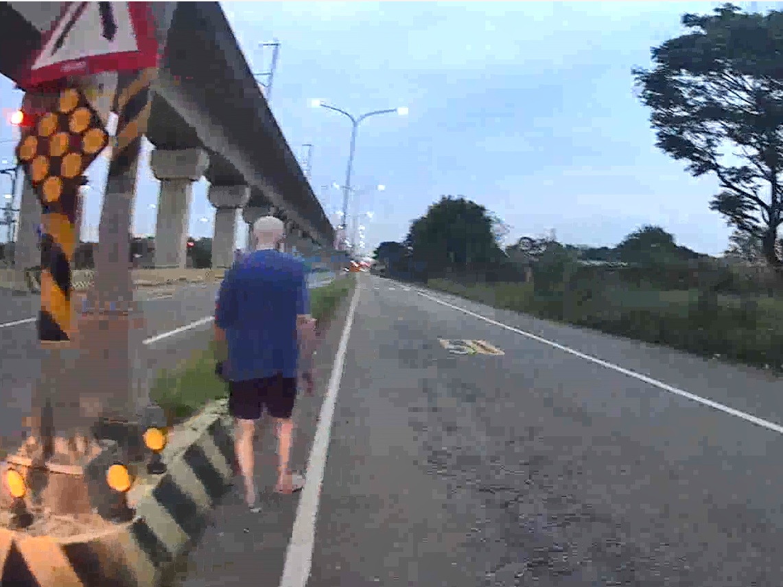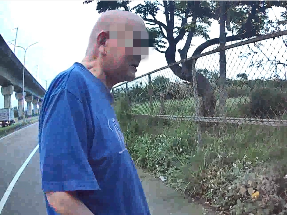 賴伯伯沿著高鐵南路步行近2小時,體力不支、氣喘吁吁,最終只得坐在分隔島上休息,所幸巡邏員警及時發現,迅速伸出援手,避免發生意外。