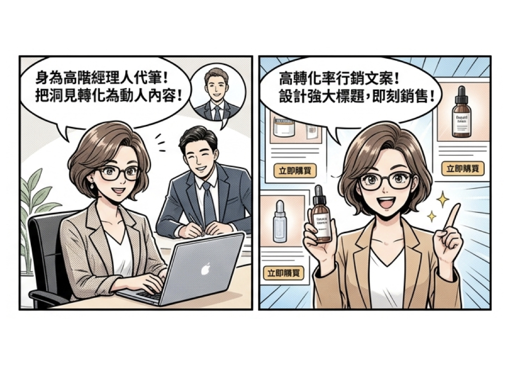 個人品牌力即商戰力。許多企業高管與創業者委託專業寫手,透過訪談將其經營理念與產業洞察,轉化為LinkedIn 上的專業貼文,藉此吸引潛在客戶與合作對象,成為高端寫手的穩定收入來源。 - 高轉化率行銷文案 (Direct Response Copywriting)