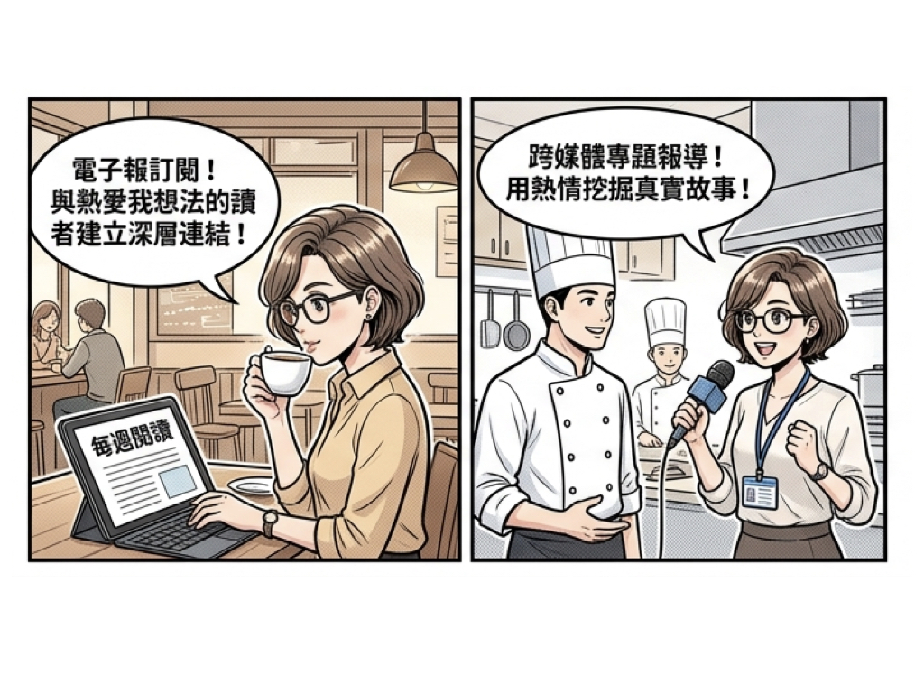為了擺脫社群媒體演算法的束縛,越來越多創作者轉向經營訂閱制電子報。透過長期且深度的價值輸出,與讀者建立強信任關係,不僅能獲取穩定的訂閱收入,更是建立個人影響力的核心陣地。 - 跨媒體專題報導與新聞投稿