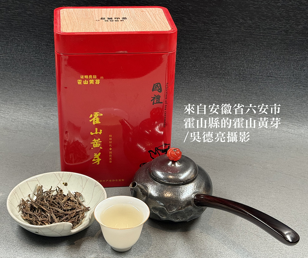 霍山黃芽主要產於六安市的霍山縣,成茶外形「條直微展、勻齊成朵,形似雀舌、嫩綠披毫」,沖泡後主要特徵為:湯色黃綠透亮、葉底嫩黃。
