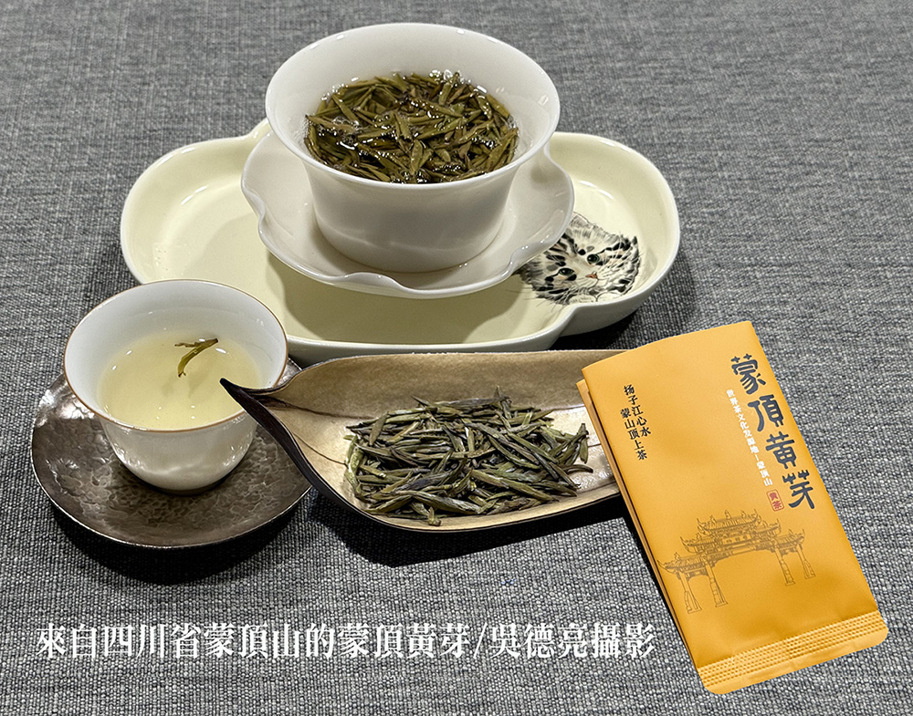 友人遠從四川寄來著名的「蒙頂黃芽」,迫不及待拆開含量僅3公克的包裝,但見芽葉特別細嫩,顯然經過精心製作後的外形扁直、芽條勻整,乾茶色澤嫩黃且芽毫顯露,沖泡後透亮金黃的茶湯特別香醇濃郁,葉底更明顯呈現全芽的嫩黃色,果然好茶。
