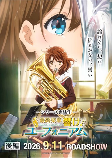 由京都動畫製作的超人氣系列《吹響吧!上低音號》正式宣布,劇場版完結篇的下半部(後篇)將於 2026 年 9 月 11 日在日本全國戲院上映。官方同步公開了包含全新分鏡的正式預告片,宣告久美子與北宇治高中的全國大賽之旅即將迎來最終章。