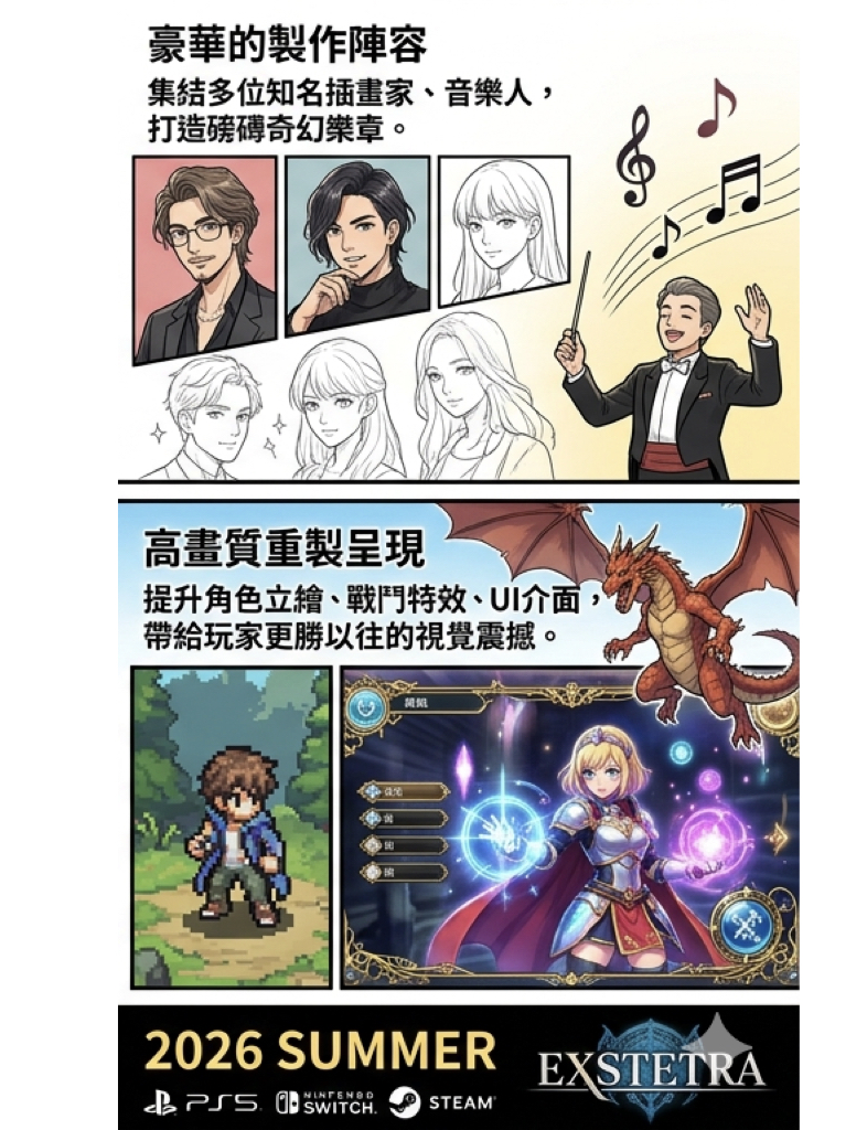 當世界走向終結時,救世主能否帶領夥伴打破命運?《Exstetra》HD重製版於2026年夏季在多平台發售,更多關於發售平台與特典的詳細情報將於日後陸續公開。