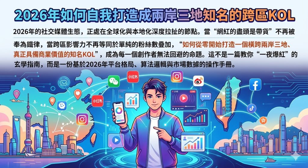 2026年的社交媒體生態,正處在全球化與本地化深度拉扯的節點。當“網紅的盡頭是帶貨”不再被奉為鐵律,當跨區影響力不再等同於單純的粉絲數疊加,“如何從零開始打造一個橫跨兩岸三地、真正具備商業價值的知名KOL”,成為每一個創作者無法回避的命題。這不是一篇教你“一夜爆紅”的玄學指南,而是一份基於2026年平台格局、算法邏輯與市場數據的操作手冊。