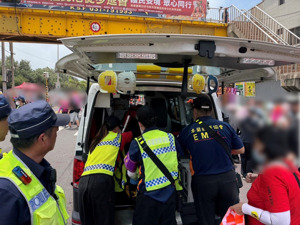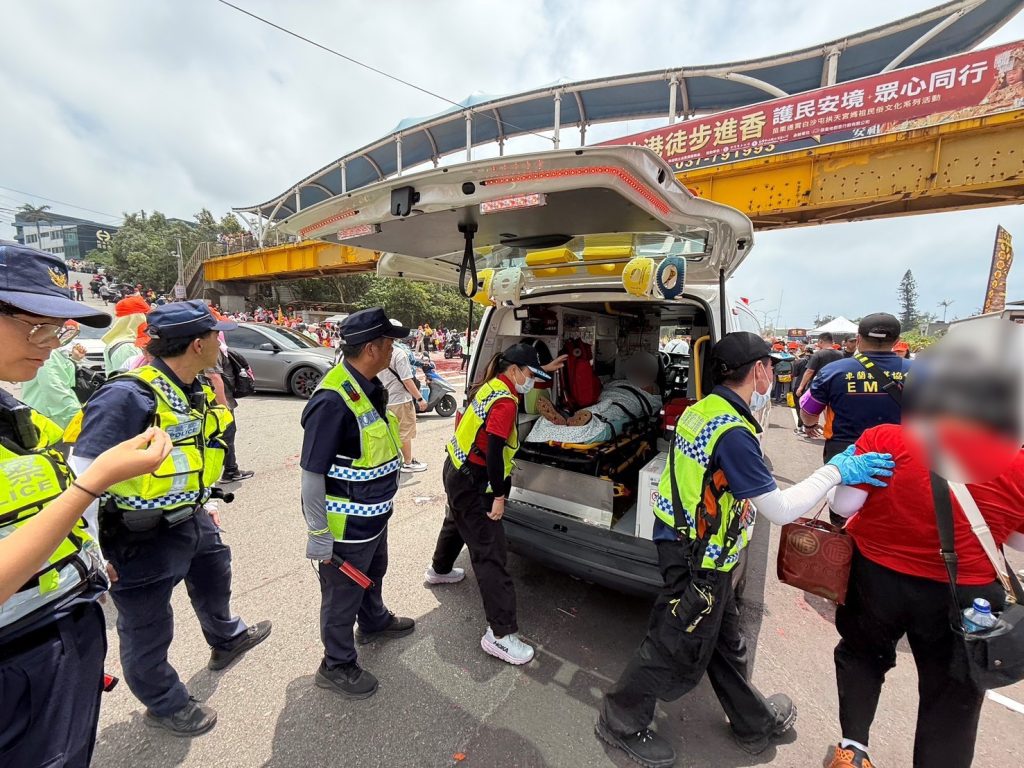 當時適逢進香隊伍綿延數公里,人潮擁擠且氣溫逼近30°C,救護車難以即時抵達。警方一方面迅速通報救護單位,另一方面與現場熱心民眾合作,在擁擠人群中開闢通道,引導救護人員順利進入。經警民合力協助,三名患者均順利送醫治療,現場秩序亦迅速恢復。
