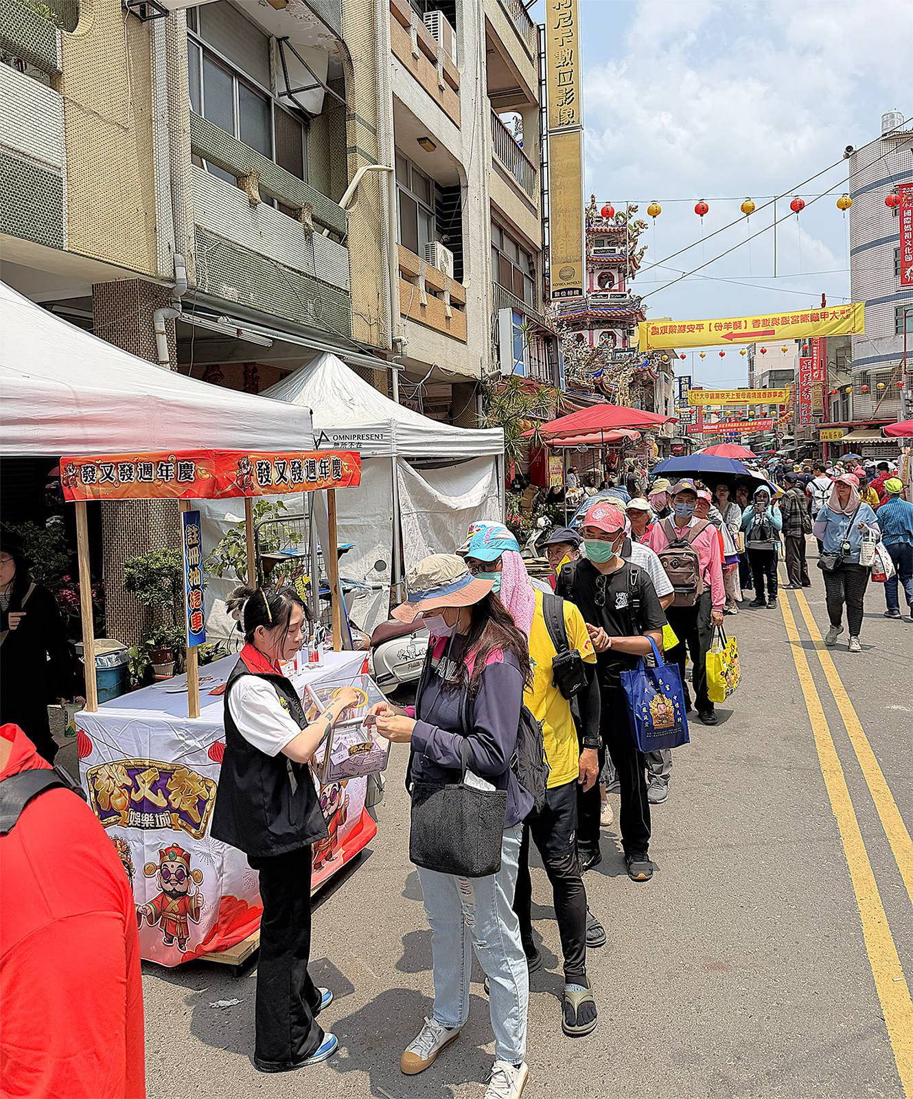 發又發娛樂城今年於新港奉天宮設置服務攤位,提供飲水與杯套等補給物資,協助信眾補充體力,現場亦邀請網紅參與現場互動,將年輕世代的活力與傳統信仰文化融合,透過簡單互動與誠摯祝福,將品牌理念「陪伴、回饋、分享」傳遞給每一位參與遶境的信眾。