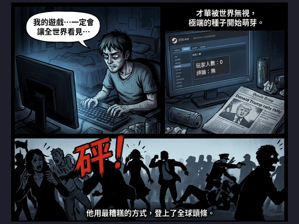 根據外媒報導與社群網路挖掘,該名嫌犯在案發前曾於 Steam 平台上架過一款個人開發的獨立遊戲。雖然該作品並非熱門大作,且遊玩人數寥寥可數,但在其真實身分曝光後,隨即引來大量網友湧入關注。