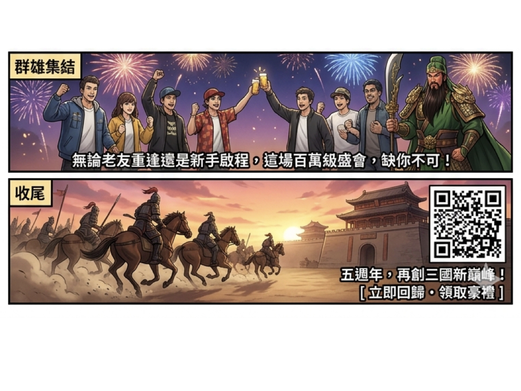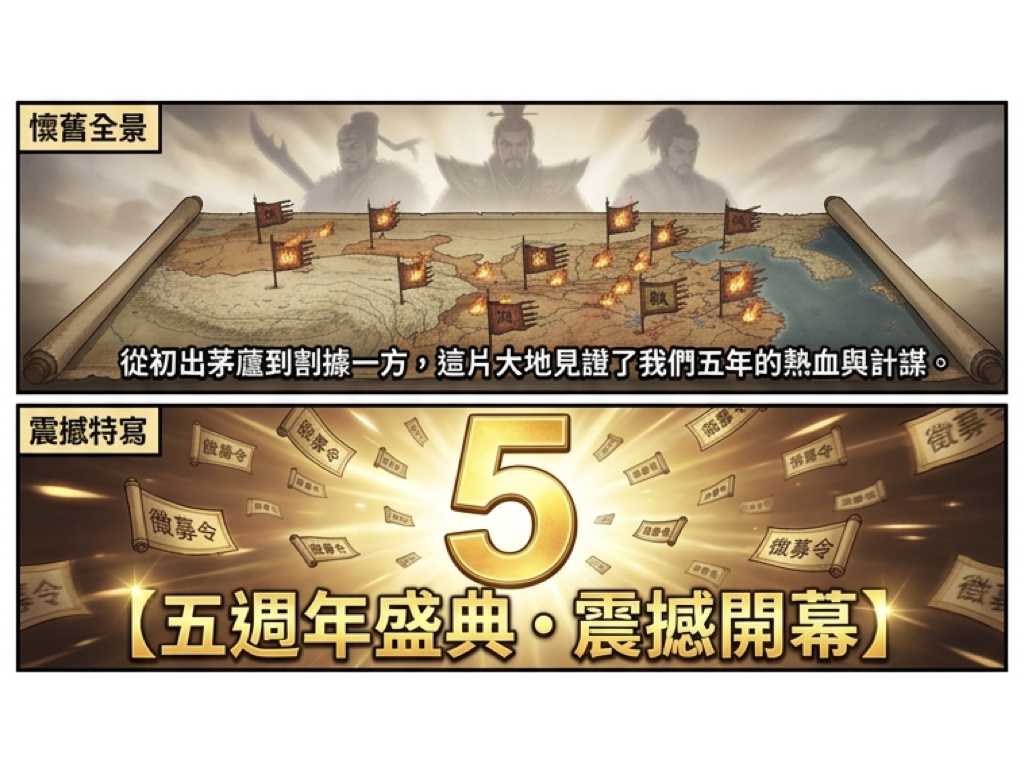 「這五年來,主公們在三國大陸留下了無數傳奇故事,」營運團隊在公告中感性致謝,「我們希望透過這次盛典,將這份榮耀分享給每一位參與過戰事的玩家。」五週年活動將於近期正式啟動,主公們請務必鎖定官方社群,第一時間掌握這場年度最強盛會的詳細資訊!