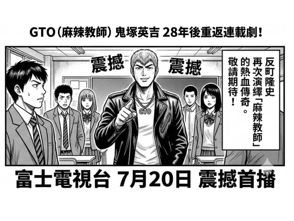 廣大日劇迷熱血沸騰的消息正式官宣!反町隆史主演的經典校園劇《GTO(麻辣教師)》,在暌違 28 年後以「連續劇」重磅回歸。富士電視台今(30)日宣布,新作於 7 月 20 日正式開播。當年的「鬼塚英吉」再度騎上重機,面對現今數位化時代下,全新一代青少年所面臨的社會問題與心理挑戰。