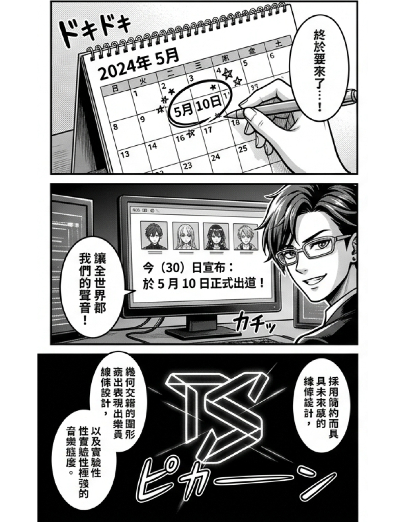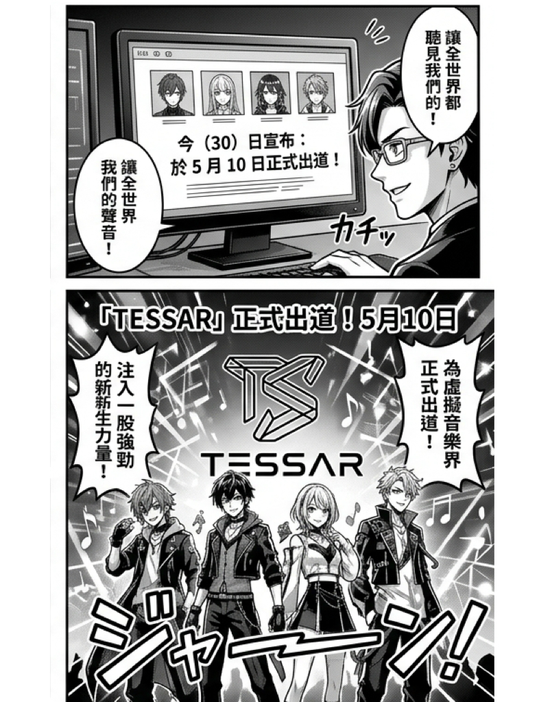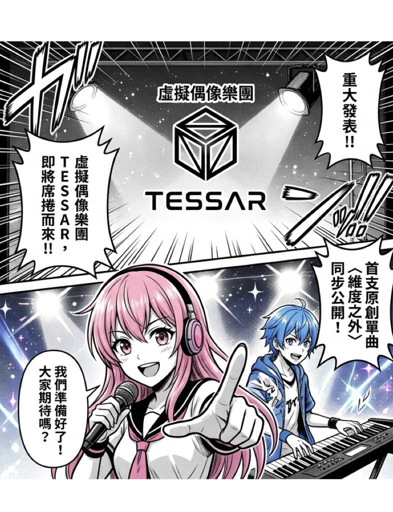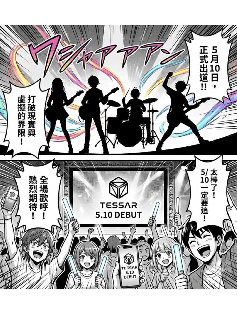 全新虛擬偶像樂團「TESSAR」今(30)日宣布於 5 月 10 日正式出道,並同步公開象徵樂團精神的官方 Logo,為虛擬音樂界注入一股強勁的新生力量。