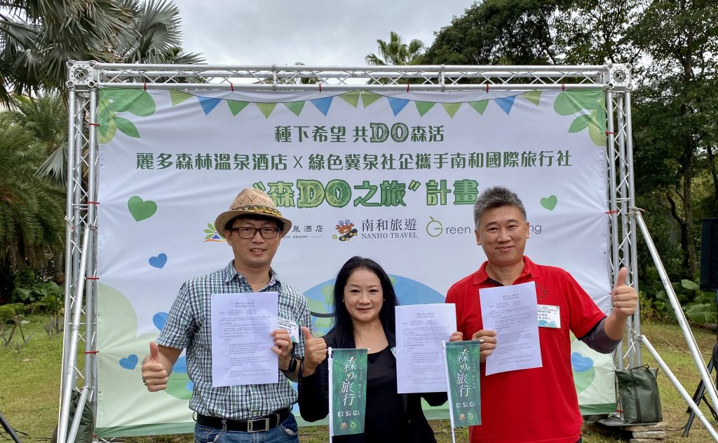 日前麗多森林酒店攜手南和國際旅行社及綠色冀泉社企,共同簽訂三方合約,啟動森 Do 旅行計畫,與會貴賓包含桃園市政府代表鄭文燦市長蒞臨 指導、市議會代表、社福團體 、會稽國小足球隊,並一起種樹,在麗勝集團兼具飯店 與生醫的雄厚背景下,為全台首創跨森 Do 旅行、主題飯店、森林碳匯、循環經濟、社會企業五大領域合作案,邀請桃園市政府、桃園市議會、學校師生,社福團體,一起種下台灣最真珍貴且值得紀念的牛樟樹開始,宣示共同邁向淨零而努力,拋磚引玉,創造多贏,為環境「淨」一份心力。